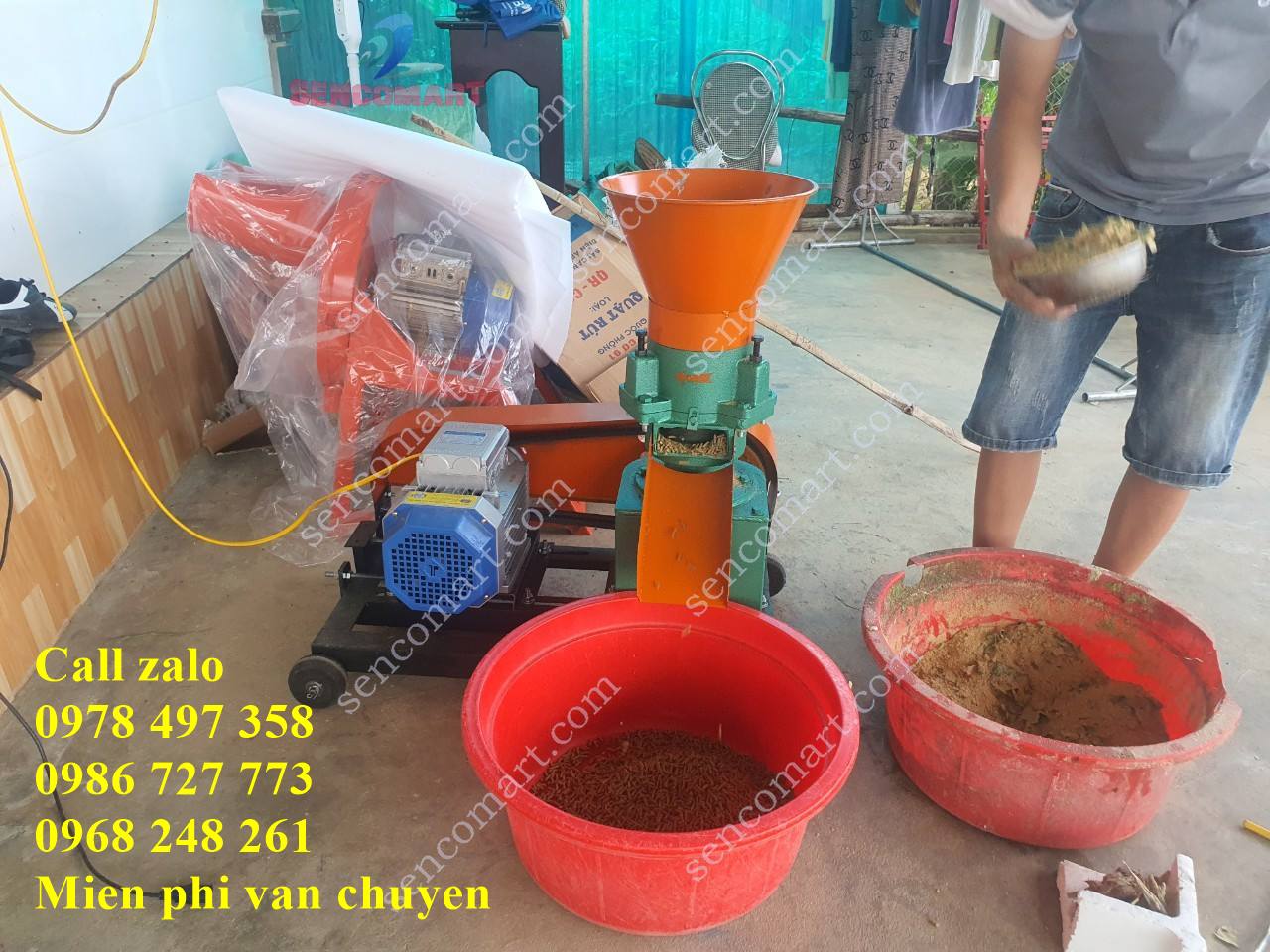 Tính năng : Nghiền ép nguyên liệu thô như ngô nguyên hạt, rau bèo, cua, cá, ốc nhỏ, cám,… thành viên cám chắc, mịn