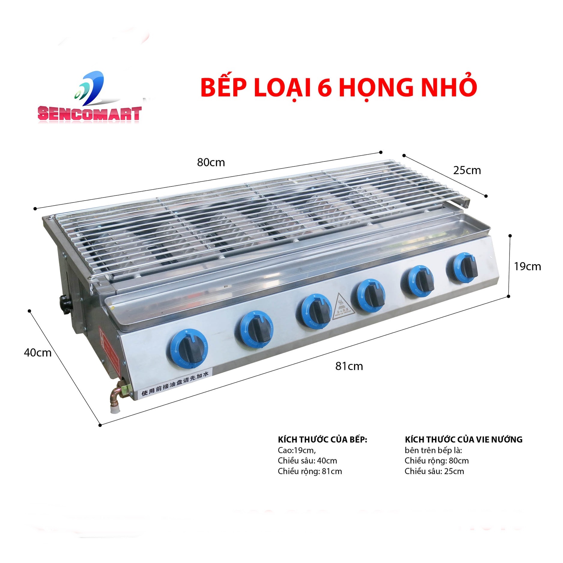 Kích thước của bếp nướng 6 đầu nhỏ