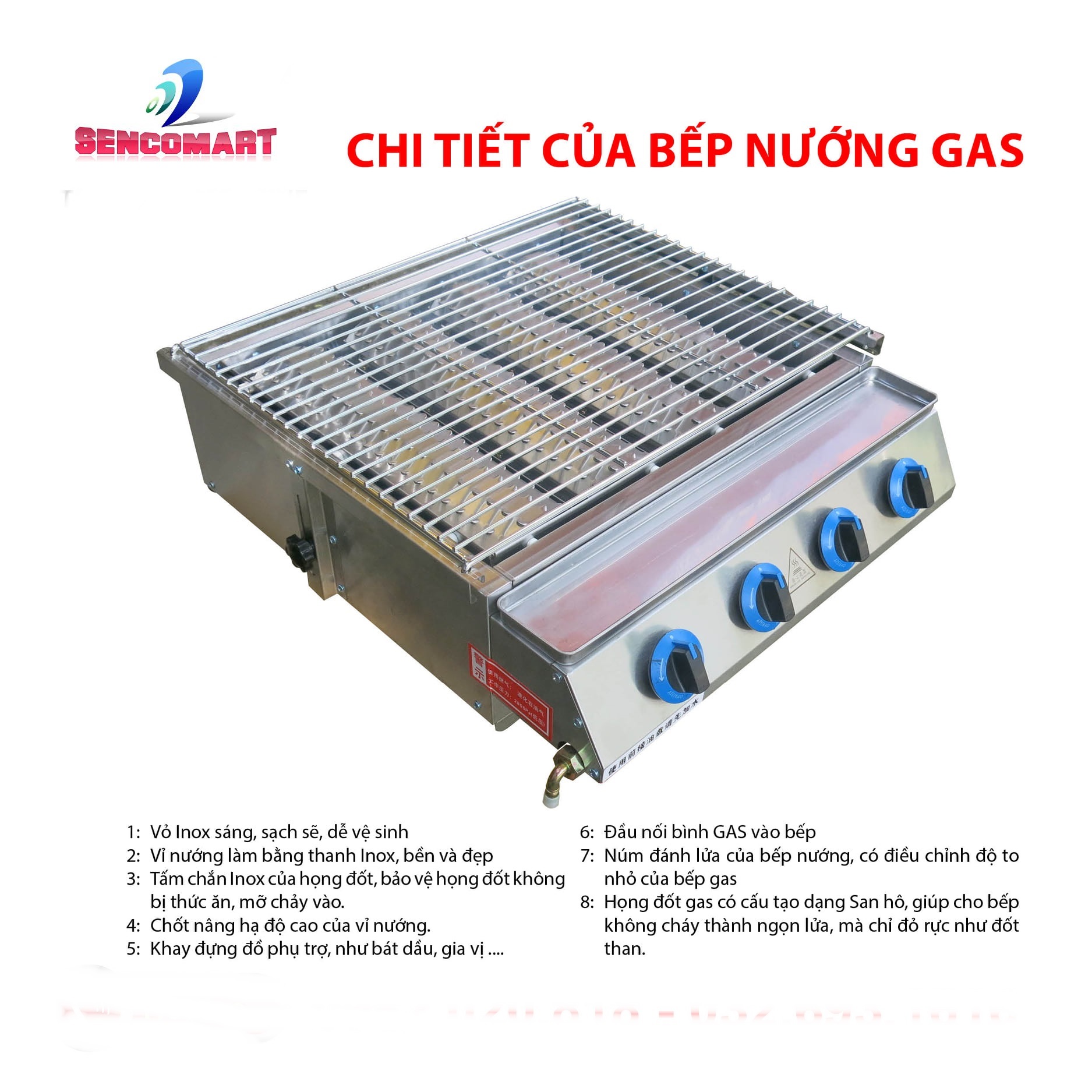 Bếp nướng gas hồng ngoại SENCO4N có thể nướng đa dạng thực phẩm, như: Thịt, đùi gà, cánh gà, hải sản, BBQ, Hàu nướng hành mỡ, hàu nướng phô mai, ?thịt xiên, xúc xích, ?khoai, ngô,.... đều kinh doanh được hết