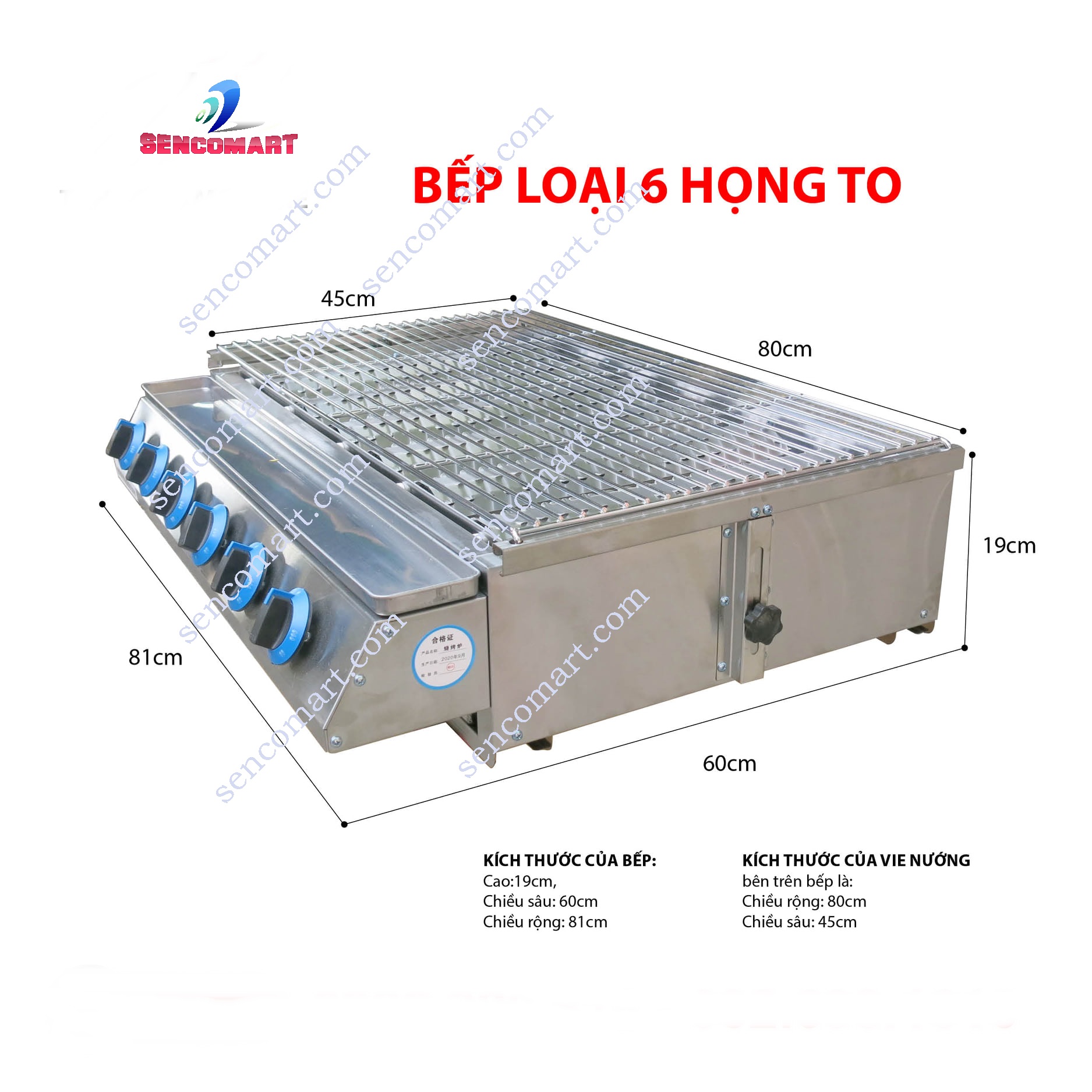 Kích thước của bếp nướng 6 đầu nhỏ