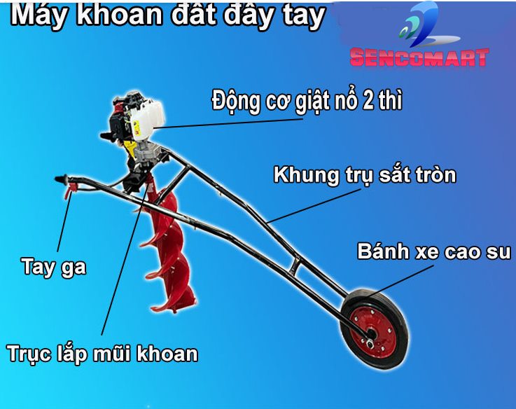 Được trang bị động cơ xăng 52cc, máy khoan có thể được một người xử lý dễ dàng cho nhiều nhiệm vụ khác nhau.
