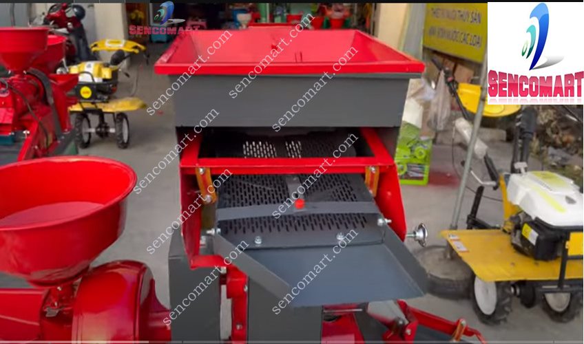 -Phễu thùng lọc rơm rạ, đá đinh... trước khi đưa vào bộ phận xát tránh được hỏng bộ sàng nghiền