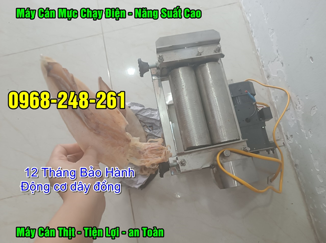 -Tuy nhiên, để làm mềm mực khô cần phải gói vào trong giấy báo và dùng búa hoặc chày để đập cho đến khi mềm, việc này làm cho bạn cảm thấy khá bất tiện và tốn sức. Chúng tôi giới thiệu đến các bạn sản phẩm máy cán khô mực chạy điện thay thế những cách dùng trước đây đem lại hiệu quả kinh tế nhất là các quán ăn, nhà hàng, phố bia.