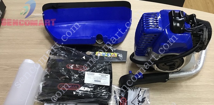 – Dung tích xi lanh 25.4cc và bình xăng 0.6 lít có miếng đế chắn bằng sắt dễ dàng tiếp xúc đất mà không lo hư hại..