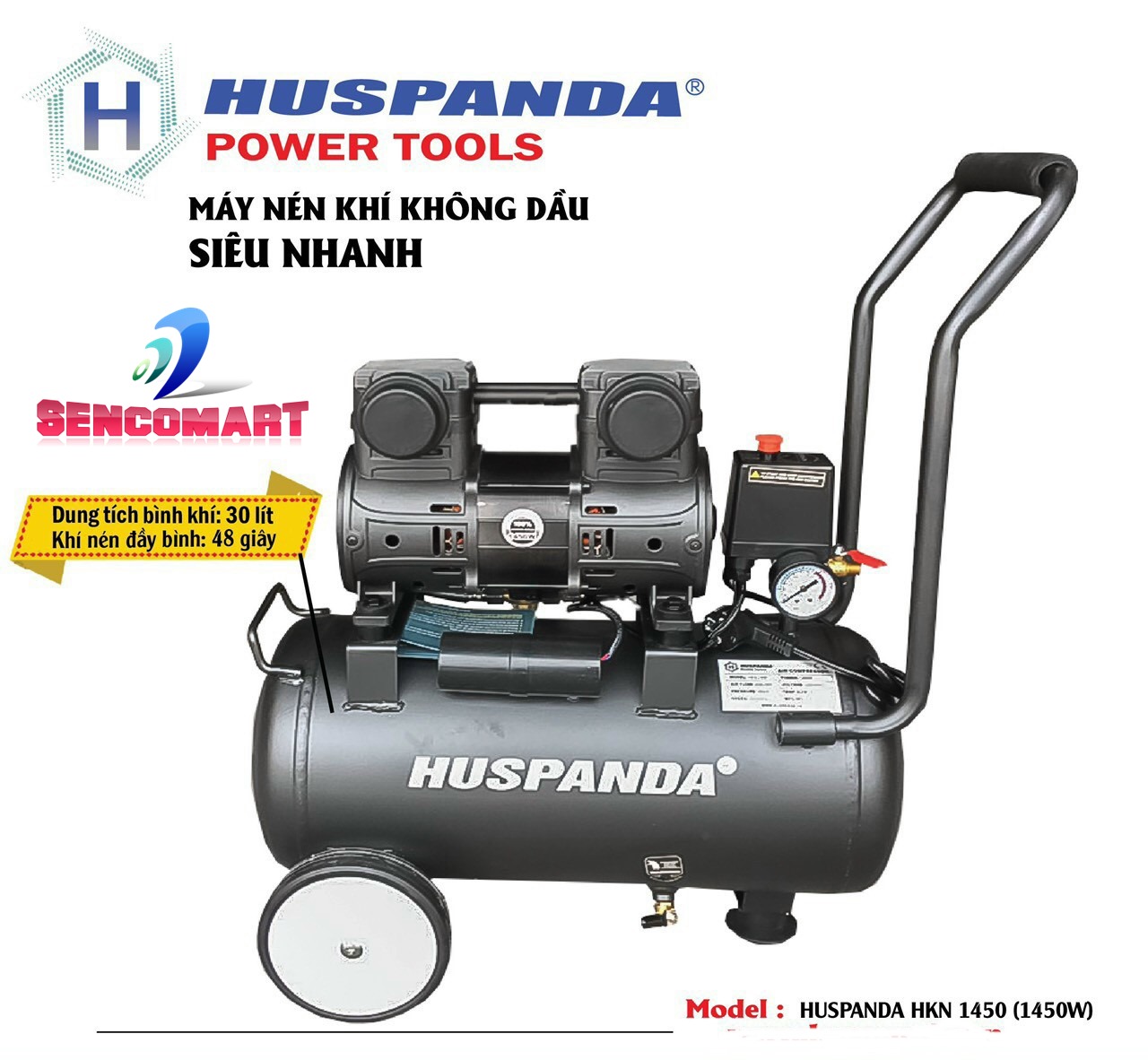 Máy Nén Khí Không Dầu Siêu Nhanh HUSPANDA HKN-1450 LOẠI 30 LÍT