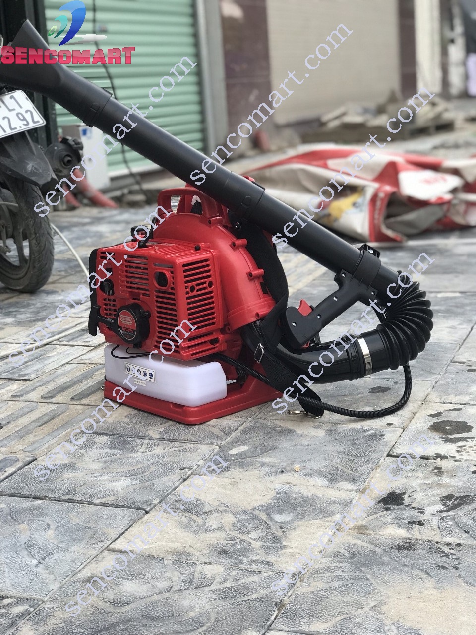 Dung tích xi lanh là 57cc, động cơ hoạt động với công suất 2500W cùng lưu lượng gió đạt 0.28 m3/giây, tốc độ không tải đạt 6.500 vòng/phút giúp thổi lá rất khỏe.