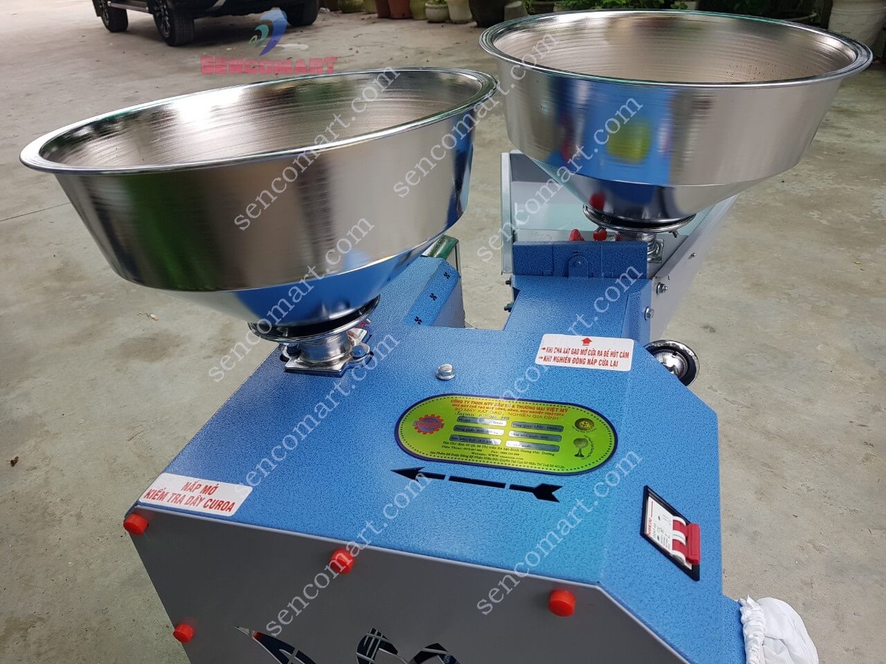 - Phễu inox và sàng ra gạo inox kèm theo các ốc vít xoáy đều bằng inox, việc này giúp cho thời gian sử dụng máy được bền hơn.