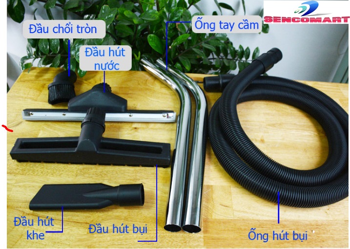 - Bước 4: Lắp chổi tròn hoặc đầu hút khe vào đầu còn lại của ống. Nếu sử dụng bàn hút bụi khô/ nước thì lắp vào đầu còn lại của ống mềm