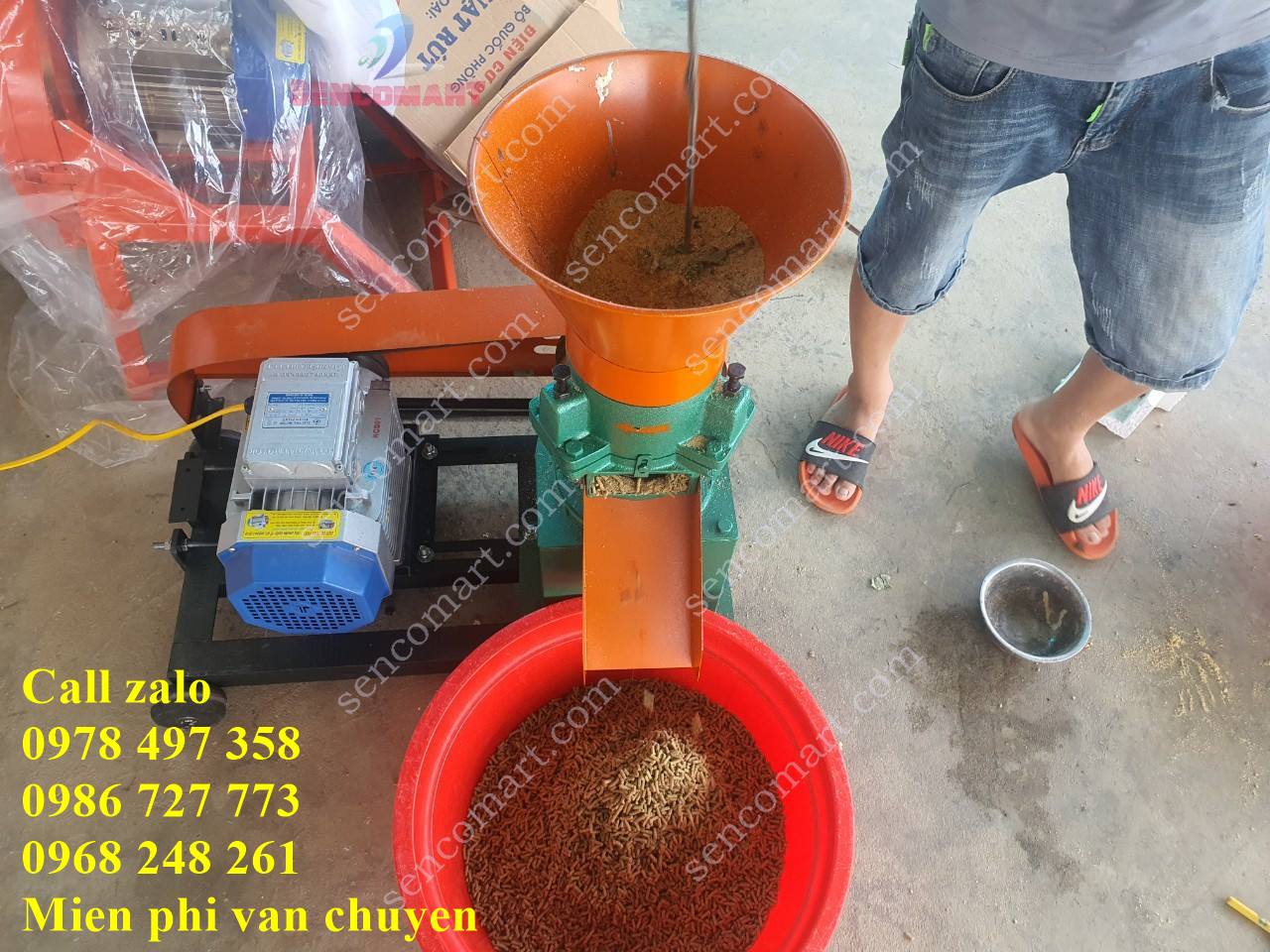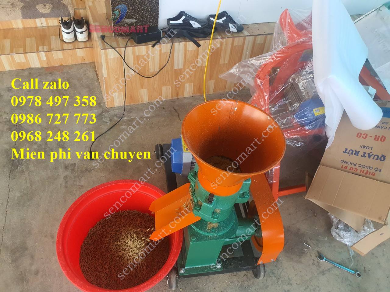 Tính năng : Nghiền ép nguyên liệu thô như ngô nguyên hạt, rau bèo, cua, cá, ốc nhỏ, cám,… thành viên cám chắc, mịn