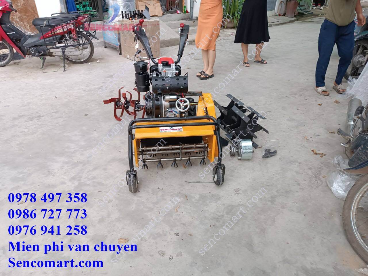 Thương hiệu: Yamaha 178CC Model: Yamaha Động cơ: chạy dầu Yamaha 178cc- CÓ ĐỀ NỔ Số gài: điều chỉnh tốc độ Tiêu hao nhiêu liệu: 0.8lit/1200m2 Công suất : 6kw Số vòng quay: 1200 vòng/ phút Tốc độ: <20km/h Hoạt động: động cơ dầu 4 kỳ Dung tích bình dầu 3,6lit Dung tích nhớt: 550ml Trọng lượng 90kg Kích thước: 120 x 98 x 80cm Phụ kiện gồm có: -Trục băm 3 hàng 17 mắt -Lưỡi xới đất 12 lưỡi 4 hàng -Bộ xạc cỏ 2 lồng mỗi lồng 6 nan -Tạo rãnh- - Vun được ngô khoai
