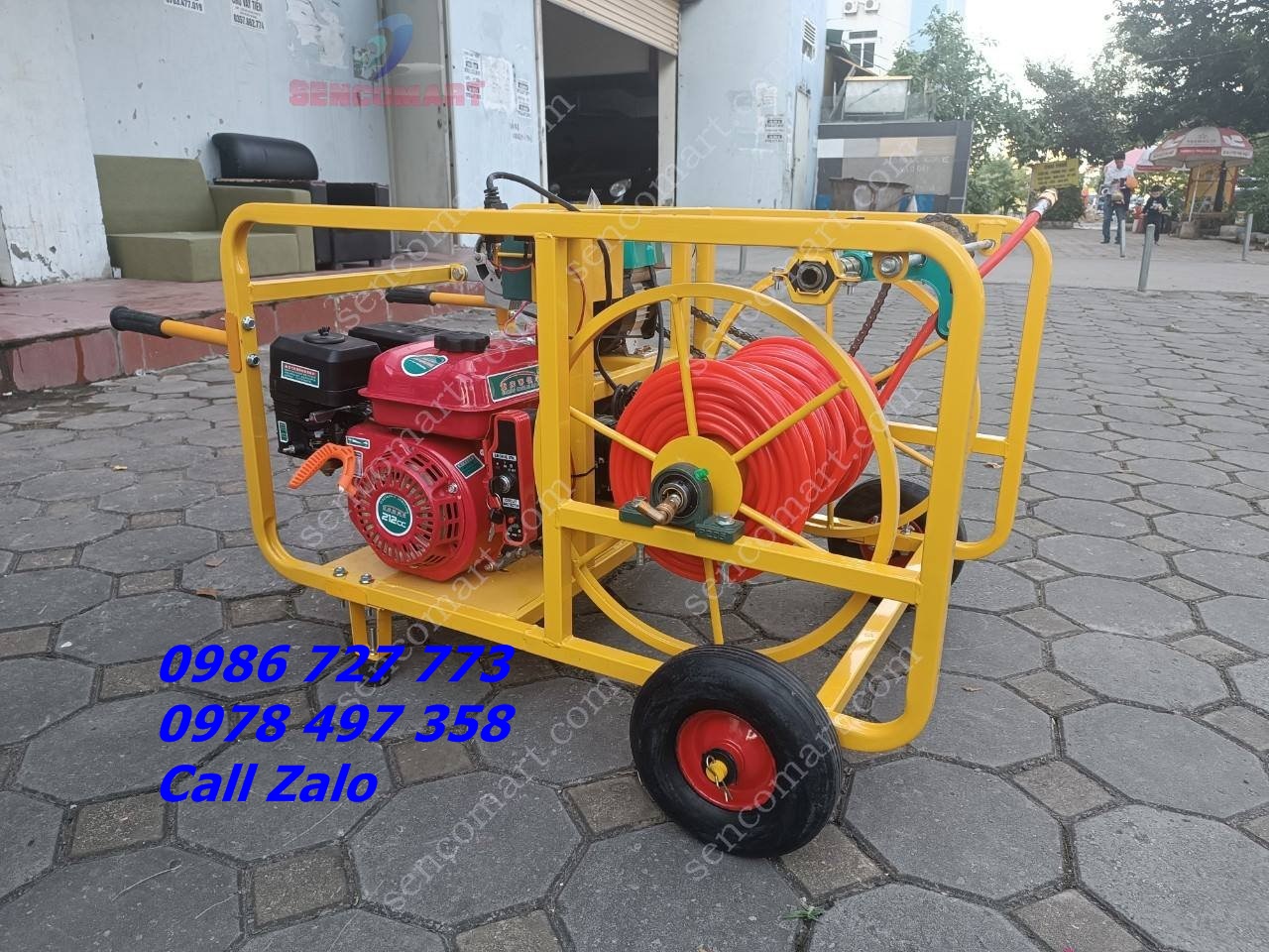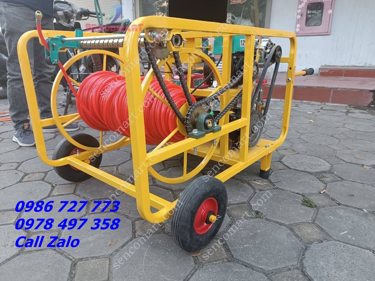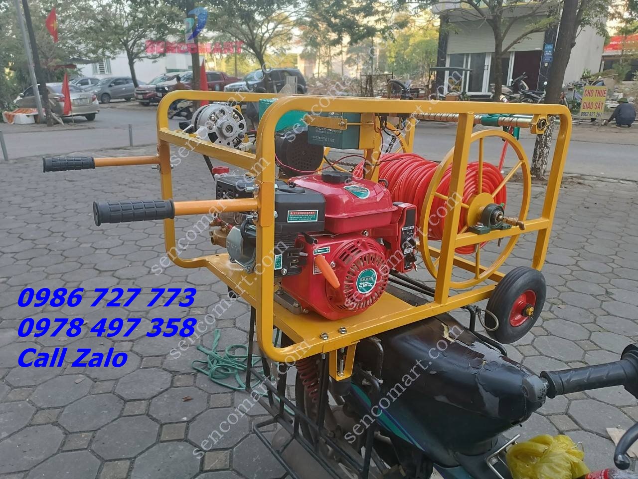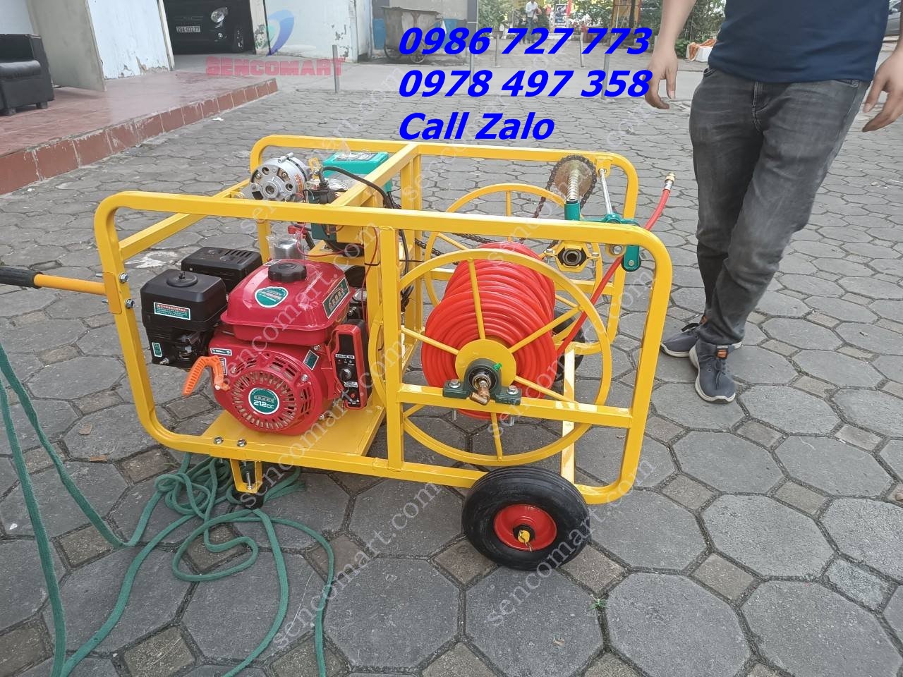 Máy phun thuốc 200 mét dây tự động cuốn thả dây 6.5HP