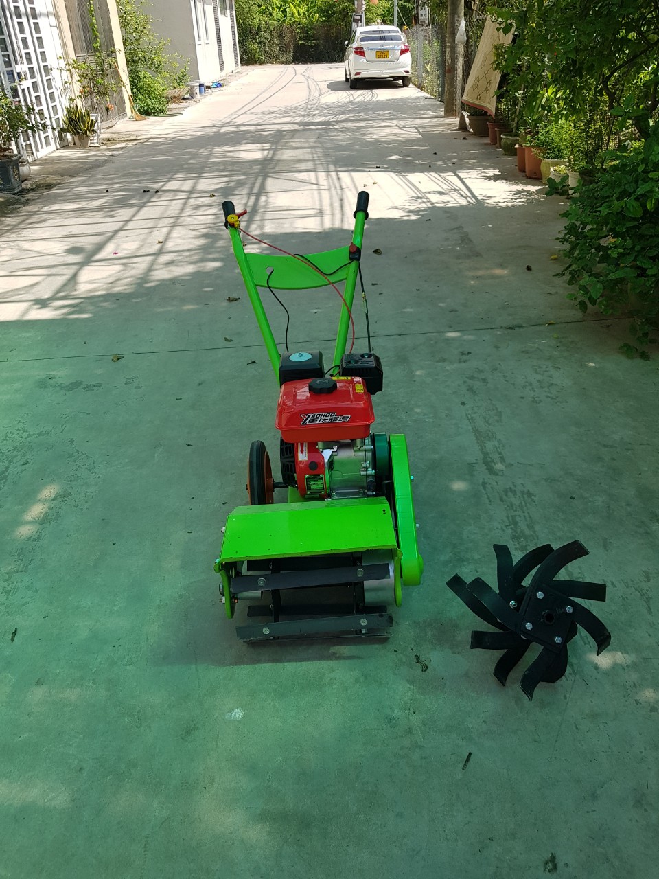 Giá trên phụ kiện gồm: lưỡi xạc cỏ, lưỡi rạch rãnh, khách hàng muốn dùng lưỡi xới mình mua thêm