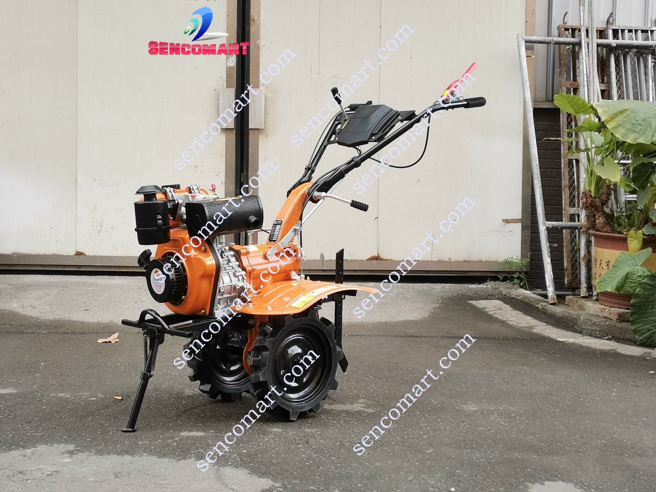 Phụ kiện đi kèm: Dàn xới 24 lưỡi rộng sâu thêm bớt được trục lưỡi, tấm chắn bùn, bánh lốp cao.