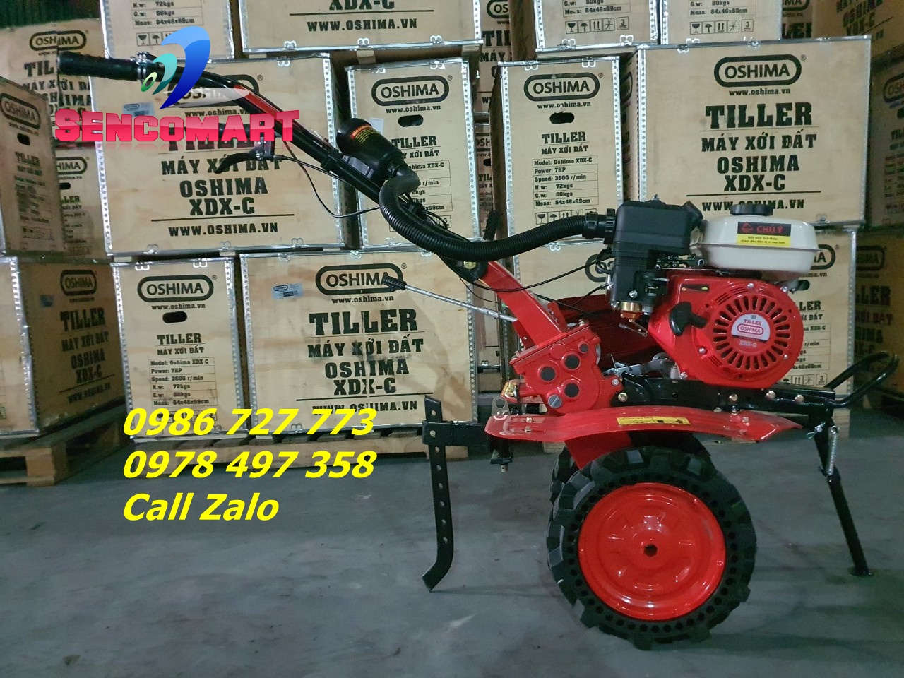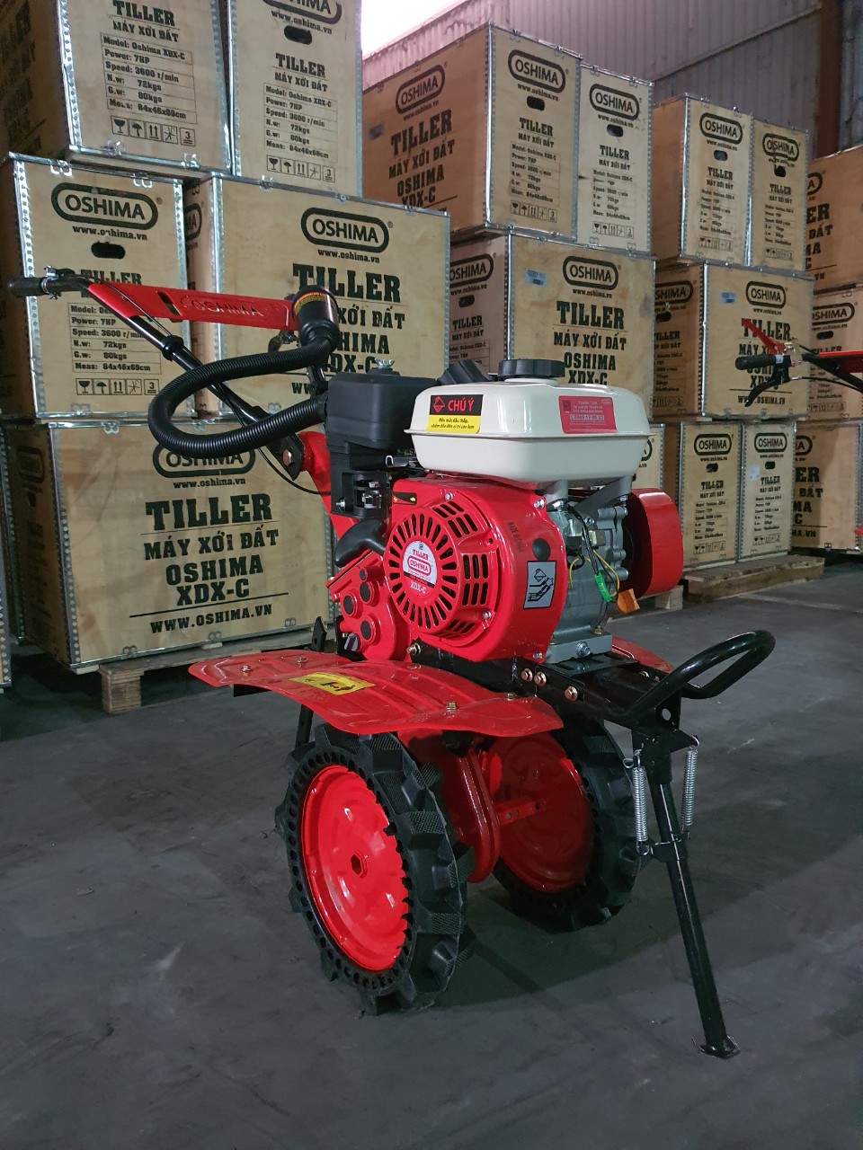 - Máy xới đất Oshima XDX-C có công suất 7HP, động cơ hoạt động mạnh mẽ, hộp số tự động với 2 số tiến và 1 số lùi giúp việc điều khiển dễ dàng hơn, cùng với đó là tay lái chắc chắn, tiện lợi, thật thoải mái khi làm việc một mình. Bánh xe thiết kế đường kính lớn, đặc ruột giúp máy xới đất cầm tay Oshima di chuyển nhẹ nhàng trên đồng ruộng.