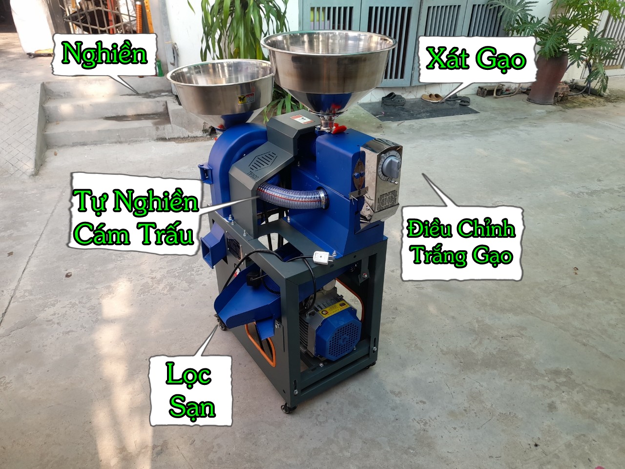 Máy xát gạo 4 chức năng gồm có: xát lúa thành gạo, nghiền cám, xay vỡ ngô, lọc sạn là máy chỉnh được trấu được nghiền nhỏ hay để nguyên là một trong những máy xát gạo gia đình được ưa chuộng nhất hiện nay. Với giá thành không quá cao, bà con hoàn toàn có thể sở hữu sản phẩm này.