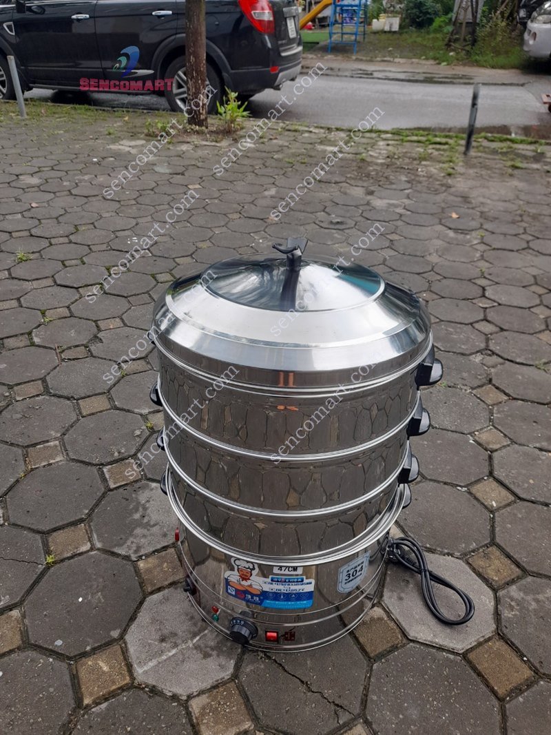 NỒI HẤP BÁNH BAO BẰNG ĐIỆN INOX 304 3 TẦNG 52CM CAO CẤP