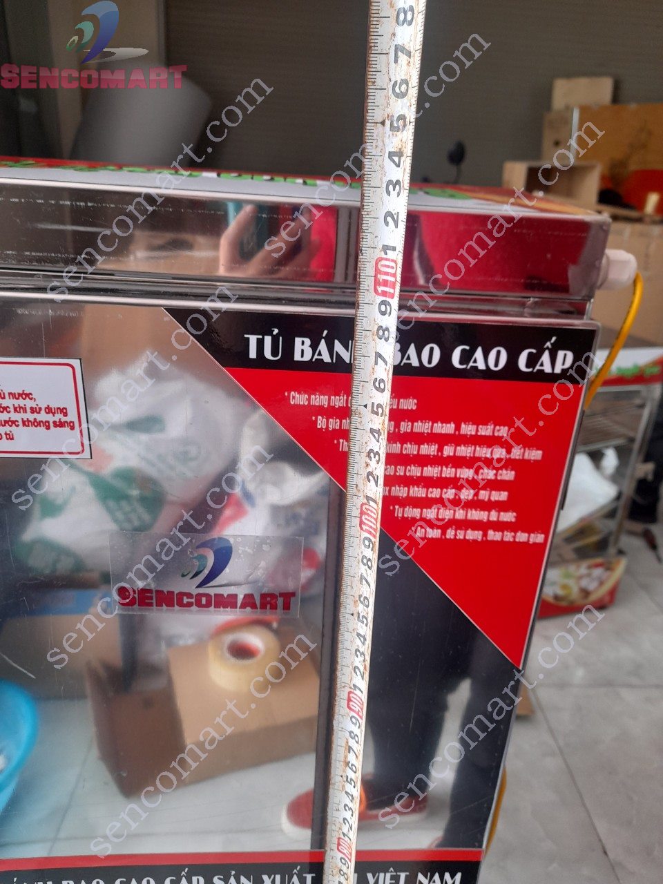 - Tấm kính vat được thiết kế nghiêng phía bên trên để khi hấp bánh, hơi nước bốc lên sẽ ngưng tụ lại bởi tấm kính và chảy ra phía trước tủ, giúp bánh bao hấp ở phía dưới không bị nhũn bởi nước nhỏ xuống