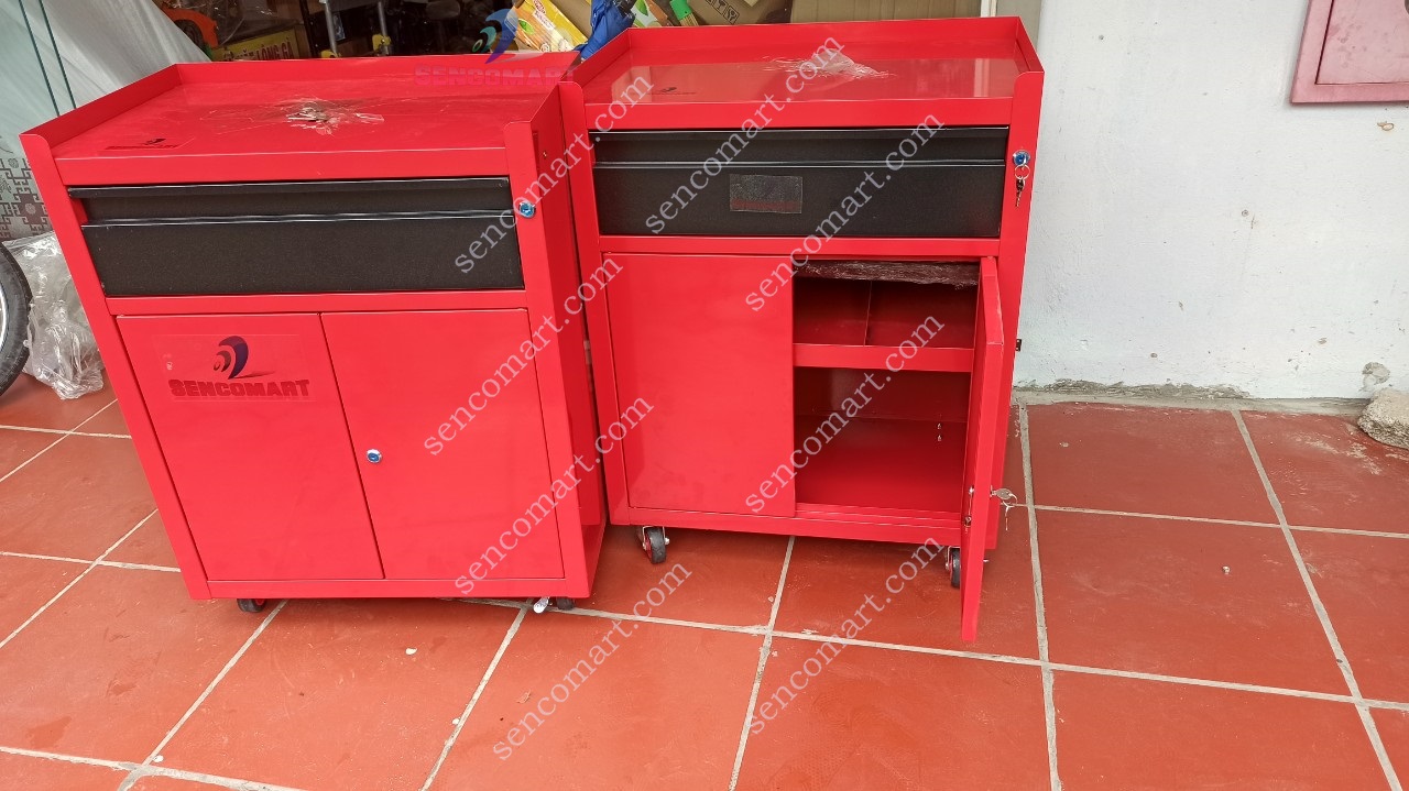 Tủ thiết kế 2 cánh giúp dễ dàng mở ra để cất giữ dụng cụ. Mặt trên của tủ có thể chứa các dụng cụ sử dụng thường xuyên.