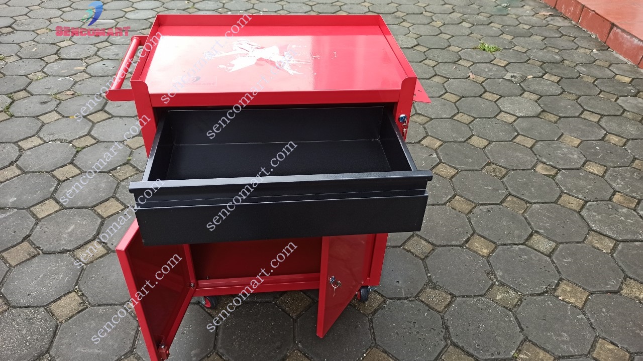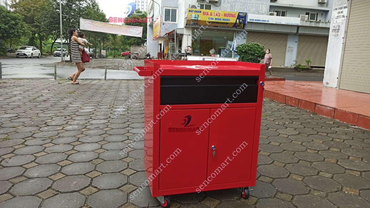 Vỏ tủ sử dụng chất liệu cao cấp chịu được va đập và trọng lượng nặng của các thiết bị như máy vặn vít, máy khoan, búa, kìm, cờ lê.... Phía trước còn có tay kéo giúp việc di chuyển thuận tiện hơn.