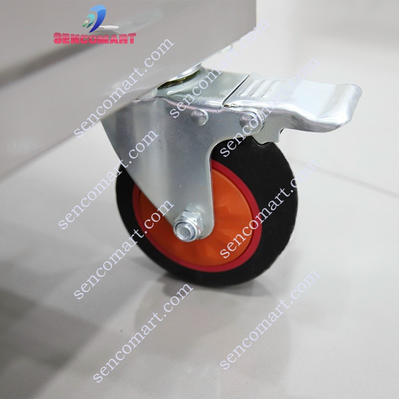 Tủ gắn 4 bánh xe đủ bánh cố định và bánh xe chốt cứng. Các phụ kiện trên, tạo việc vệ sinh và bảo trì tủ sau này vô cùng dễ dàng.
